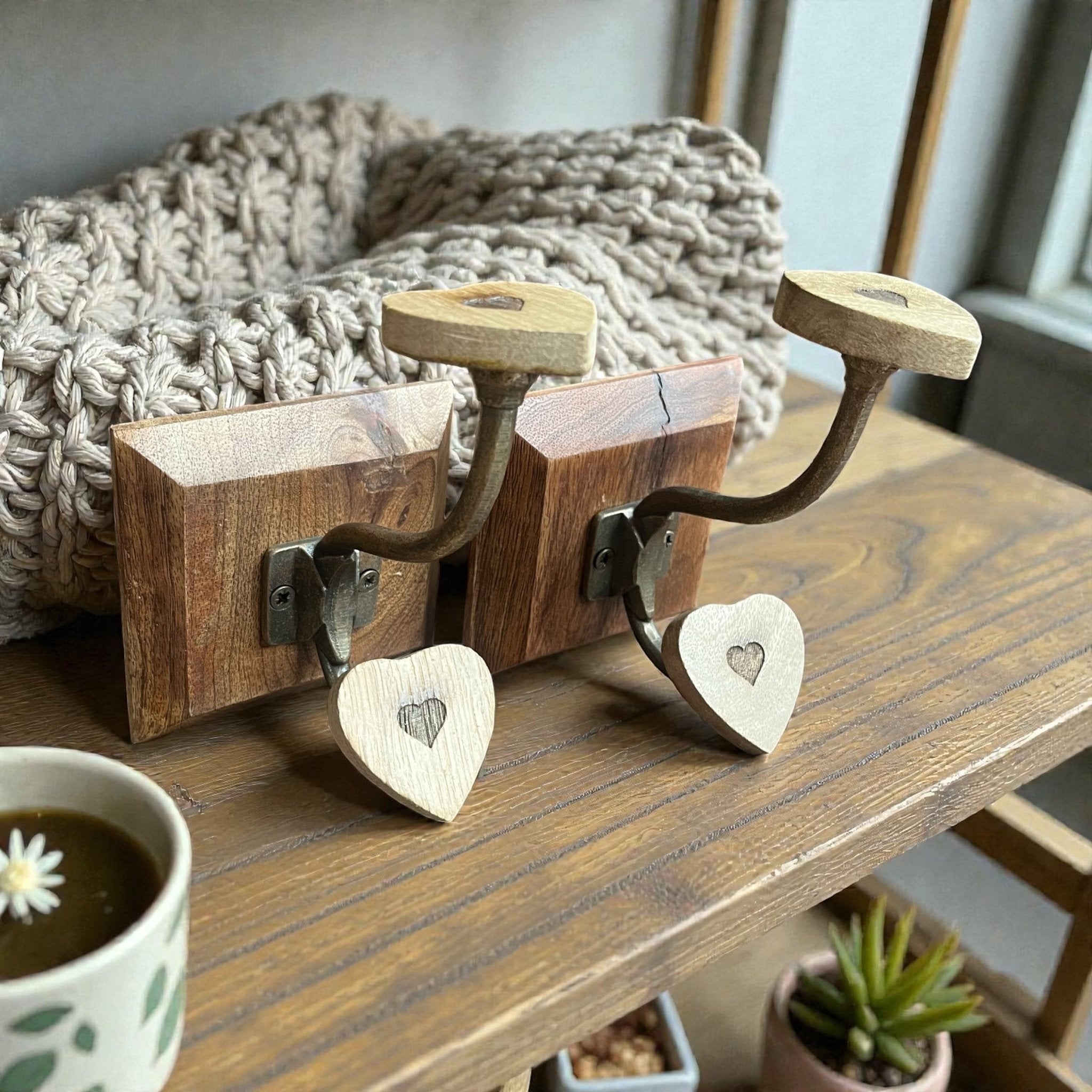 Add a touch of rustic love to your home with this beautiful and functional Mango Wood Rustic Heart Hook.