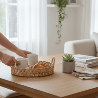 Elevate your home decor and serving game with this charming Circular Water Hyacinth Tray. Combining natural texture with robust design, this versatile basket is perfect for organizing, decorating, and serving, both indoors and out.