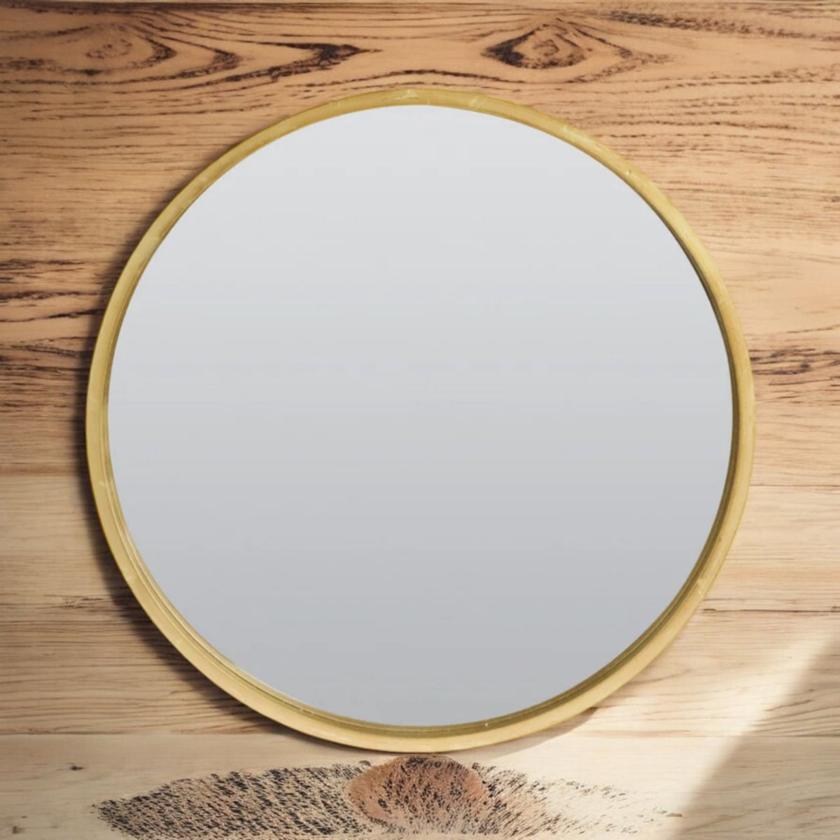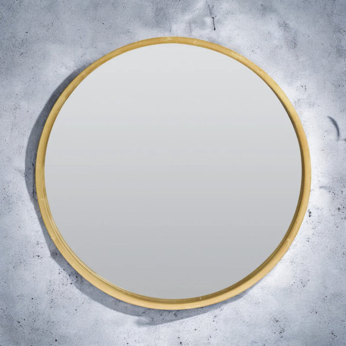 Super simple with a minimalist look, the 50cm Round Mirror with Gold Wood Frame will bring sleek sophistication to your space.