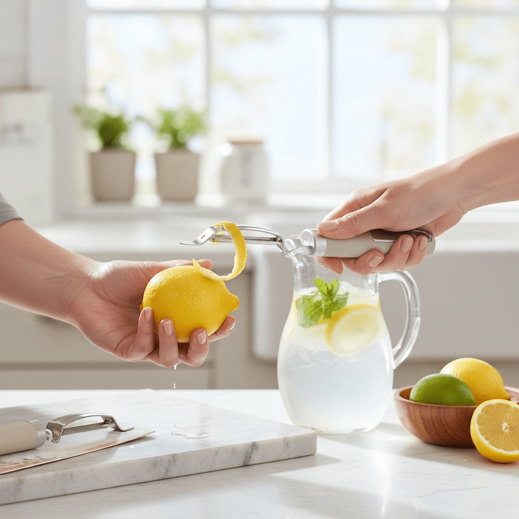- Peeler: Features a sharp blade for easily peeling fruits and vegetables.