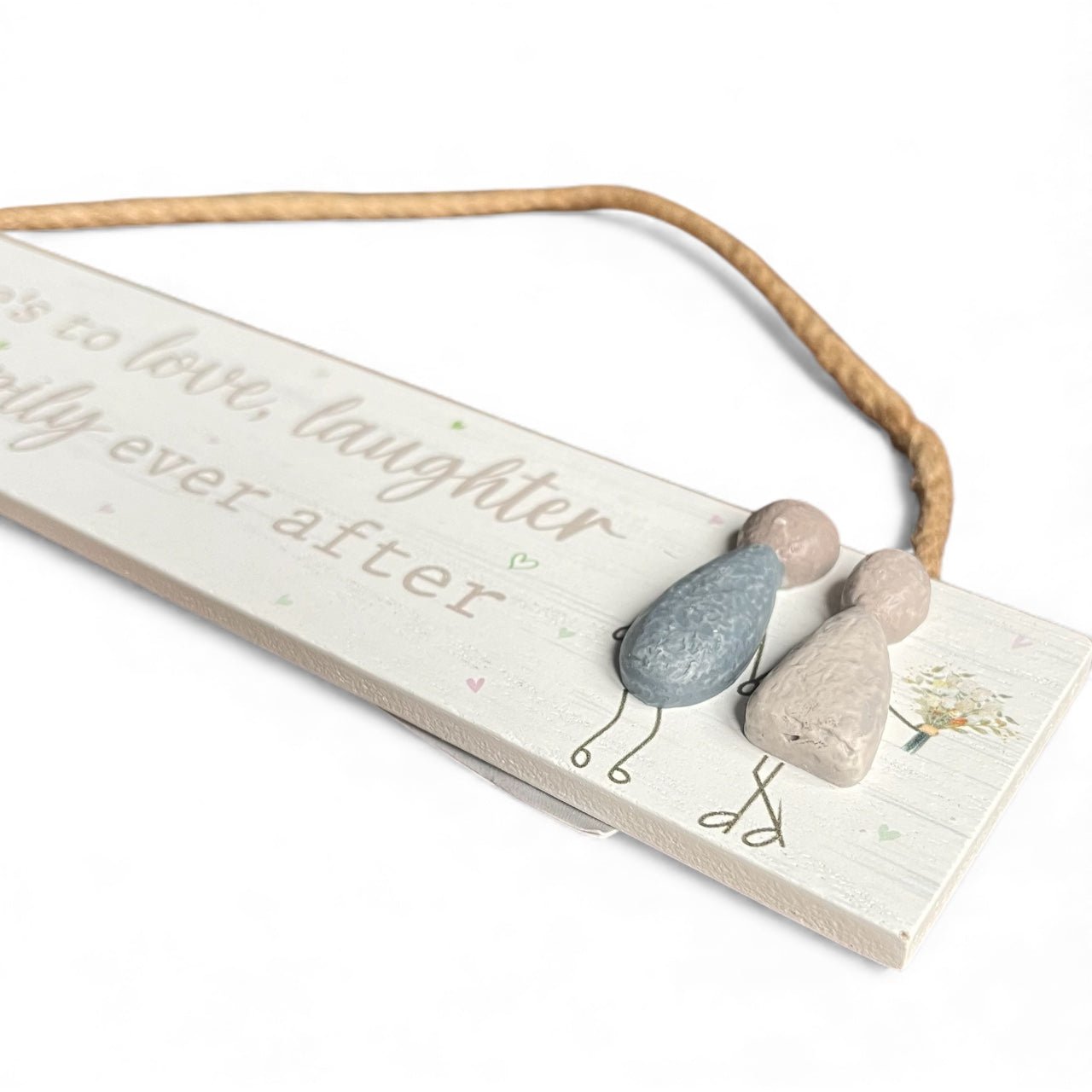 Pebble Wedding Plaque: "Here's to Love, Laughter & Happily Ever After"
