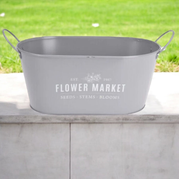 Rammento 37cm Zinc Trough Flower Plant Pot with Handles