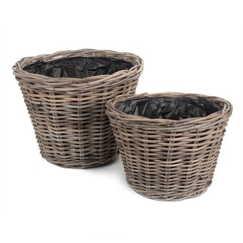 Taupe 40cm Round Barrel Planter, Double Walled, 24 Litre Capacity