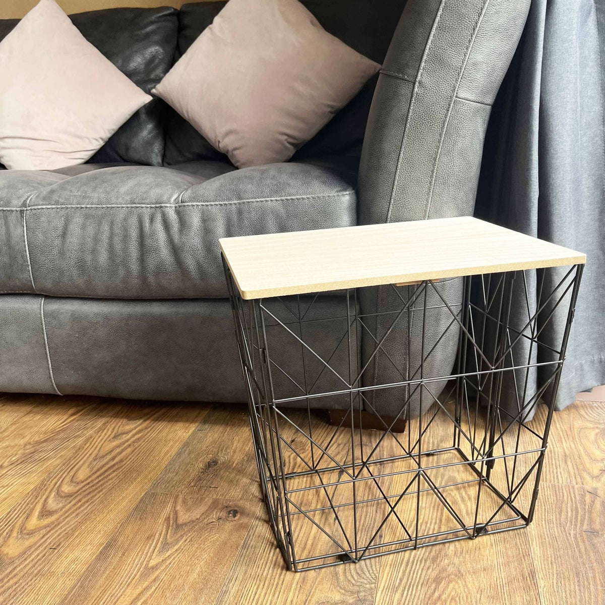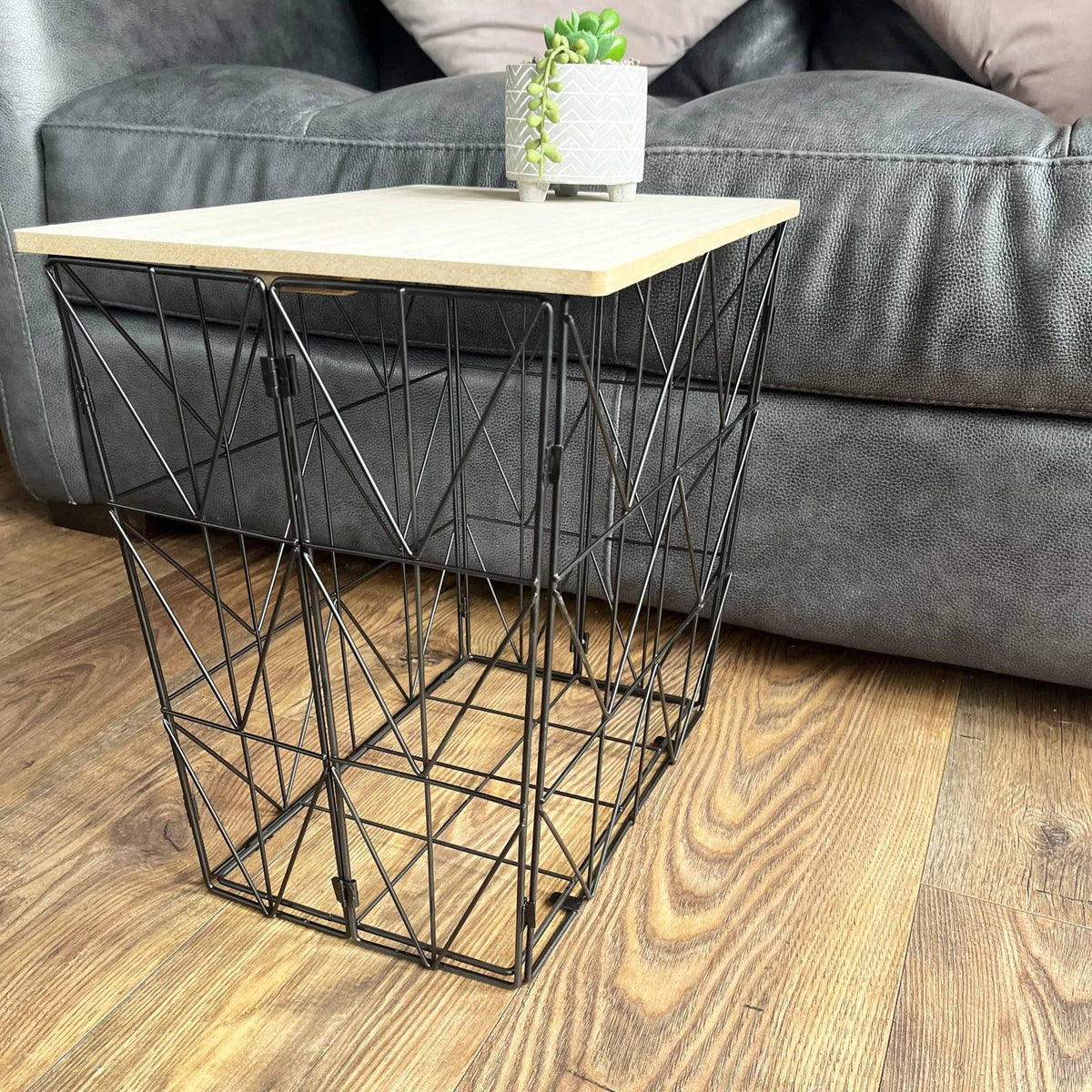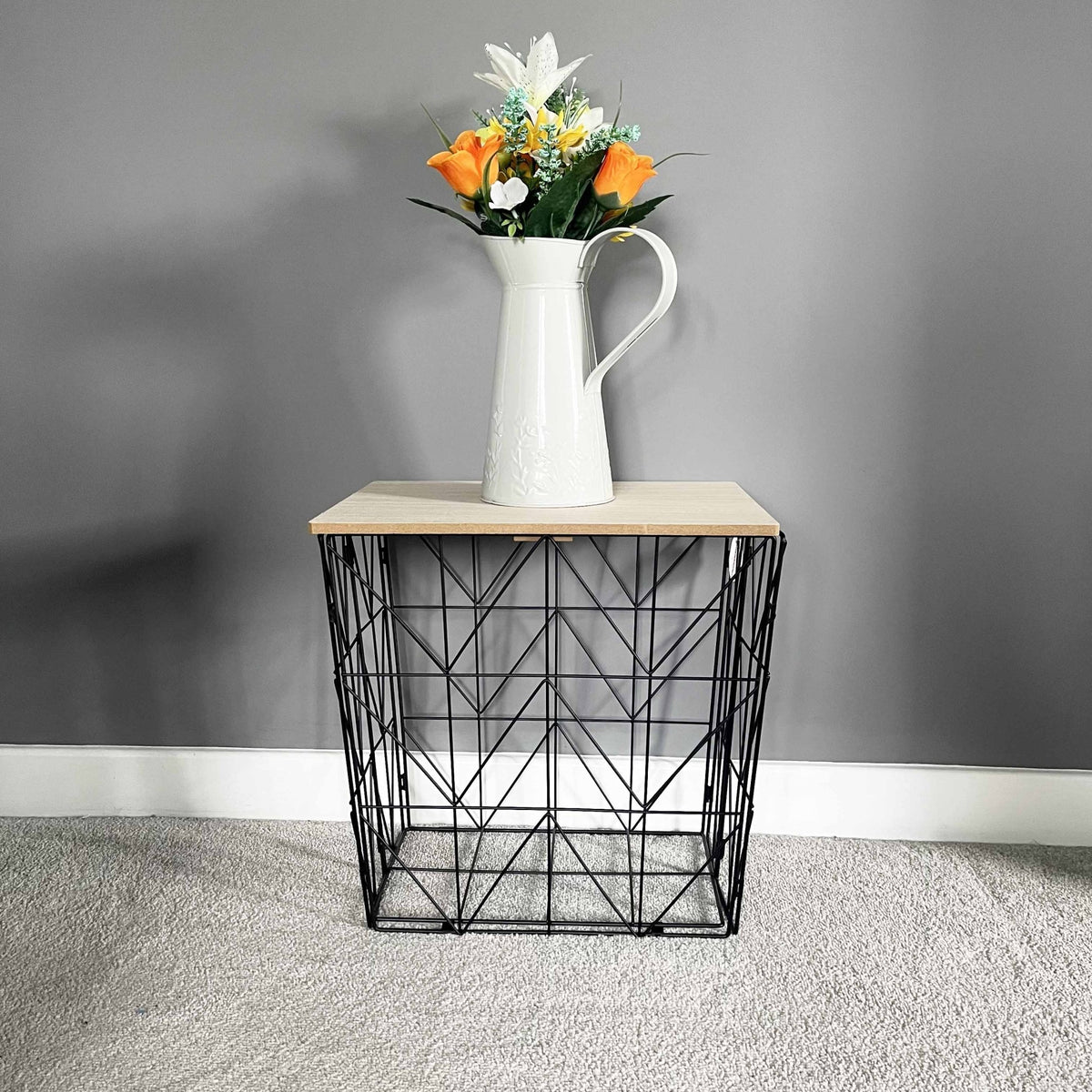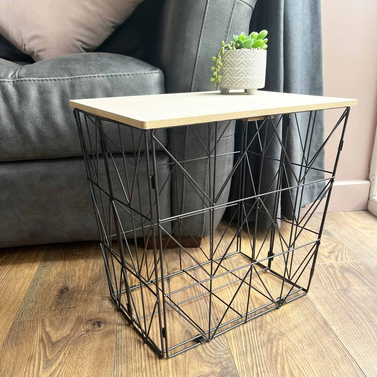 Lightweight and portable, it's a fantastic option for living rooms and hallways. A striking black metal wire design makes this a modern side table that sits very well in most modern homes.