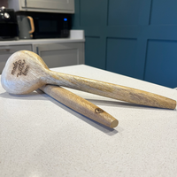 This lovely pair of 100% mango wood serving spoons is uniquely shaped and designed and is a handy set to have around the kitchen for use with salads and other large dishes.