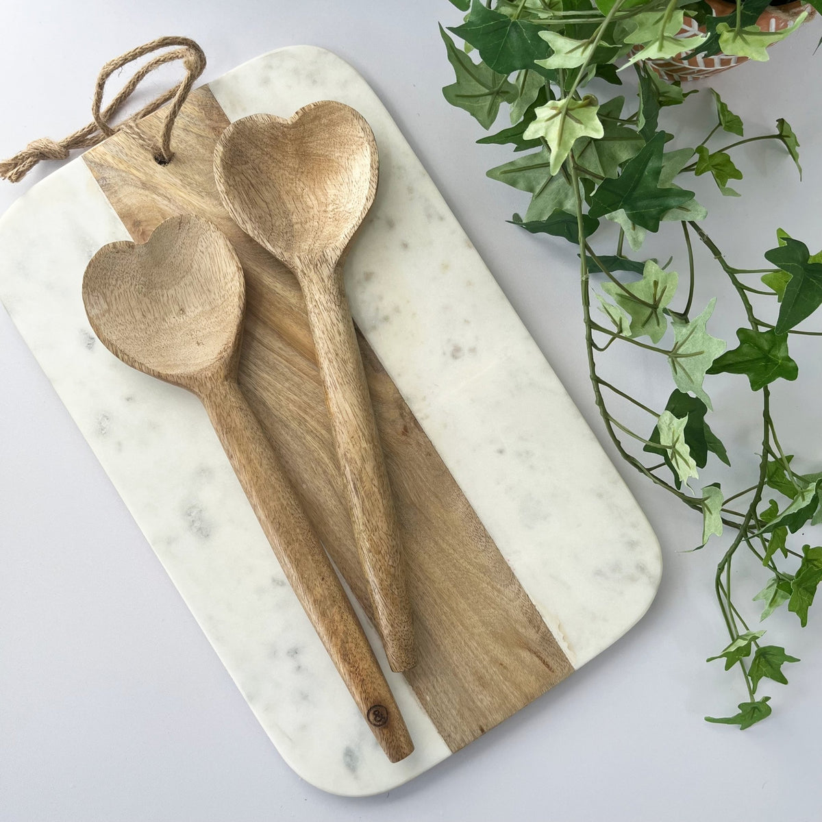 Natural Mango Wood Heart Wooden Spoons (Pair of 2)