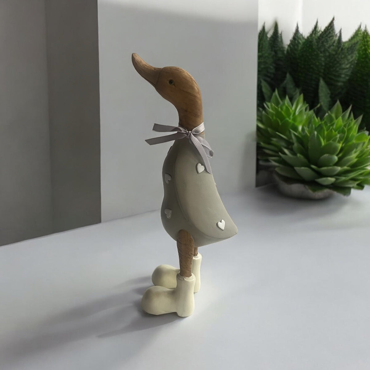 Delphine Duck - Neutral Heart Duck Ornament / Figurine