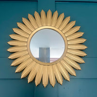 Elevate your interior decor with our stunning 40cm Gold Sunburst Mirror. This beautifully crafted decorative wall mirror is more than just a reflection; it's a captivating piece of art that brings light, warmth, and a touch of mid-century modern elegance to any space. Perfect for creating a focal point or adding a shimmering accent.