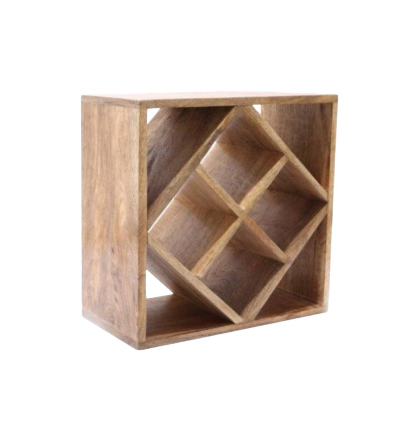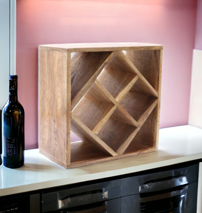 4-Bottle Mango Wood Diamond Design Wine Rack
