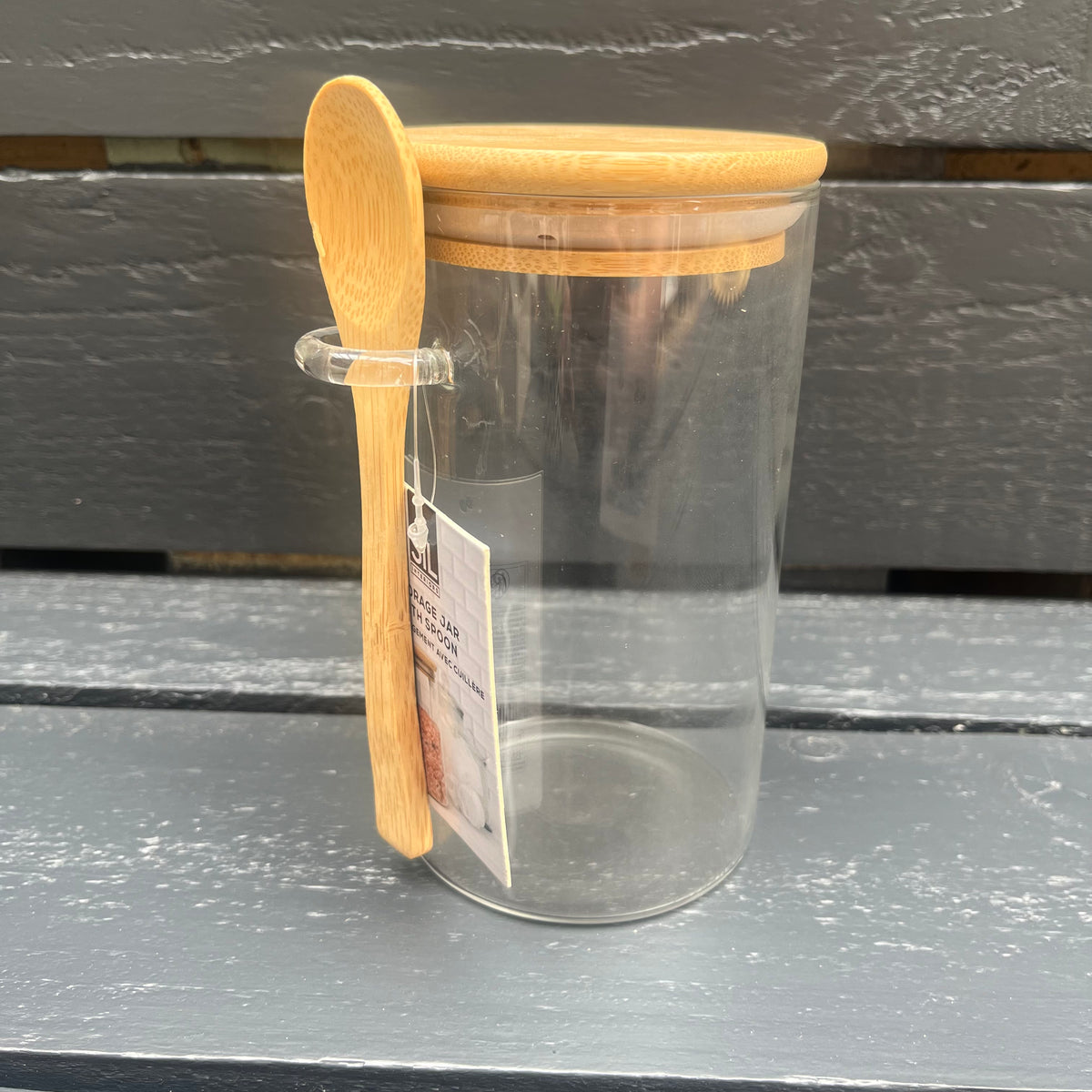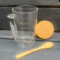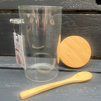 Storage Jar with Wooden Spoon , Versatile Storage for Kitchen or Bathroom Body Scrubs, Epsom Salts, Coffee, Hot Chocolate