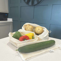 This set of 3 bags - small, medium and large - are washable and reusable for a lifetime, sustainably sourced, and come complete with a drawstring function to seal contents easily and securely.