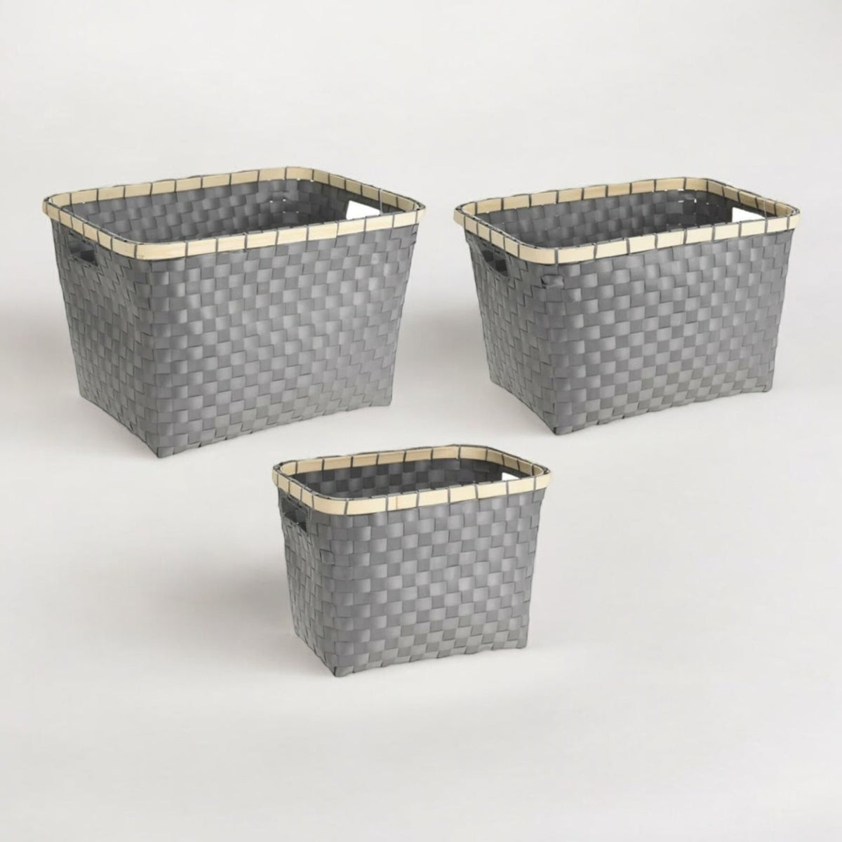 Set of 3 Traditional Wicker Style Storage Basket Grey