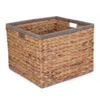 Square Water Hyacinth With Grey Rope Border Storage Basket