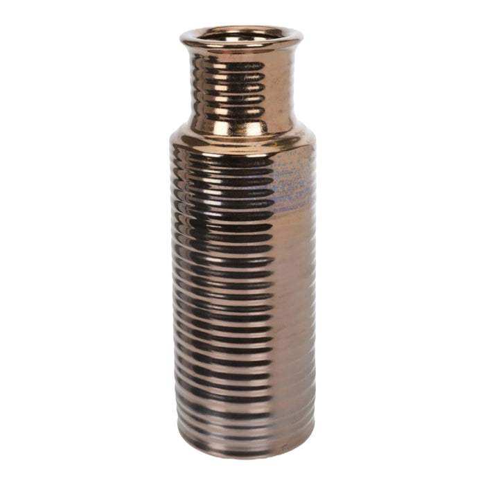 31cm Tall Rippled Ceramic Cylinder Flower Vase 2 Tone Colours Matt & Gloss