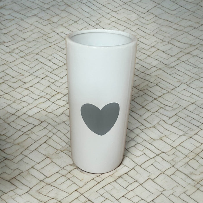 Ceramic White Flower Vase with Grey Heart