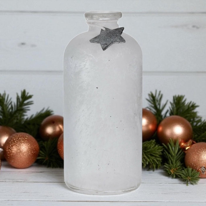 Glass Flower Vase, 25cm Tall Christmas Bottle Vase with Stunning Festive Design